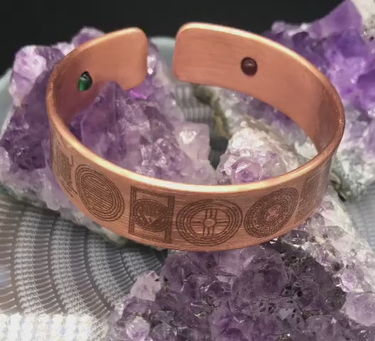 Bakır bilekliklerimizi yeniledik. Akik taşları ile süsledik. Dua ve korumalarımızı her iki yüzüne yayarak daha da çeşitlendirdik.Ürünümüz 1,5 cm eninde ve 2 mm kalınlığa sahiptir. Yaklaşık 41 gr ağırlığa sahiptir.